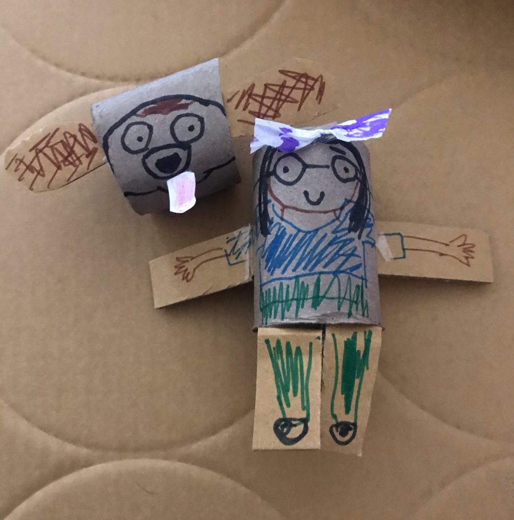 Example: Rachel made a nature portrait and Kaya made a bed for her toy raccoon!