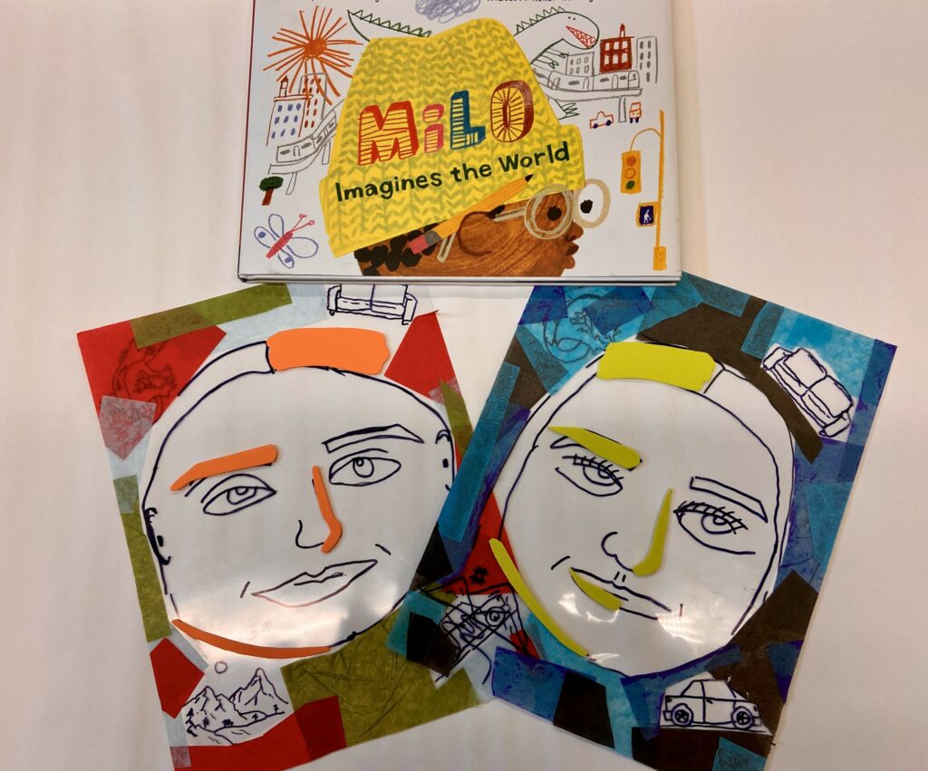 3. Story Sharing: While you are tracing each other’s faces, share stories and talk about assumptions you might have made about each other or that other people might make about you. For example, in the story of Milo, he imagines the young boy with the white shoes as being on a very different journey from him that day, but they turn out to have something in common. If you’re doing this part on your own, consider moments of when you were surprised to learn something about someone or when someone may have been surprised to learn something about you.