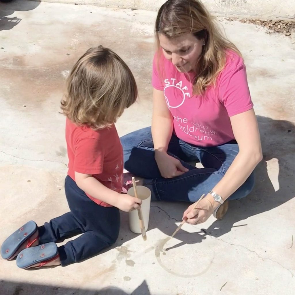 For this week’s ScholarShare 529 Toddler Time at Home, we are going outside and painting with water! This is a simple, no mess way to paint that you can do outside in the sun together.