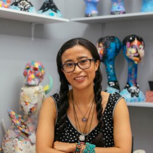 New York–based multidisciplinary artist Saya Woolfalk creates immersive installations, sculpture, video, and performance that use science fiction and fantasy to reimagine identity, culture, and the future. Through long-term narrative projects including “The Empathics” and “ChimaTEK”, Woolfalk has developed an expansive fictional world centered on the Empathics, a visionary race of women who can alter their genetic makeup and fuse with plant life.