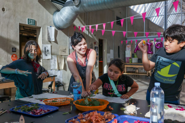 This series is led by Artopia’s Art + Creative Learning Manager, Danielle Rives (she/her) and Sr. Teaching Artist Teresa Perez (she/her). Danielle’s practice is rooted in painting, drawing, textiles, and mixed-media processes, and explores the intimate and everyday. Her favorite drawing tools are inexpensive ballpoint pens for quick line sketches of everyday sights, and graphite sticks for creating rubbings of interesting textures on the go.
