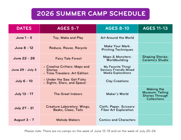 Create art you can play with! You will learn how to make toys that move and learn the basics of sewing a plushie. Develop problem solving skills when making a board game and learn how to make a splatter painting with a spinning top!
